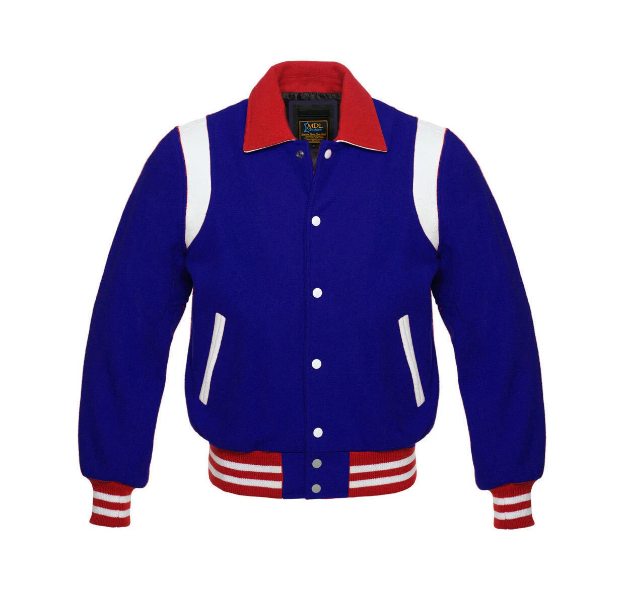 Varsity Jacket School Collared Collage Retro Wool Leather Jacket Bomber jacketT