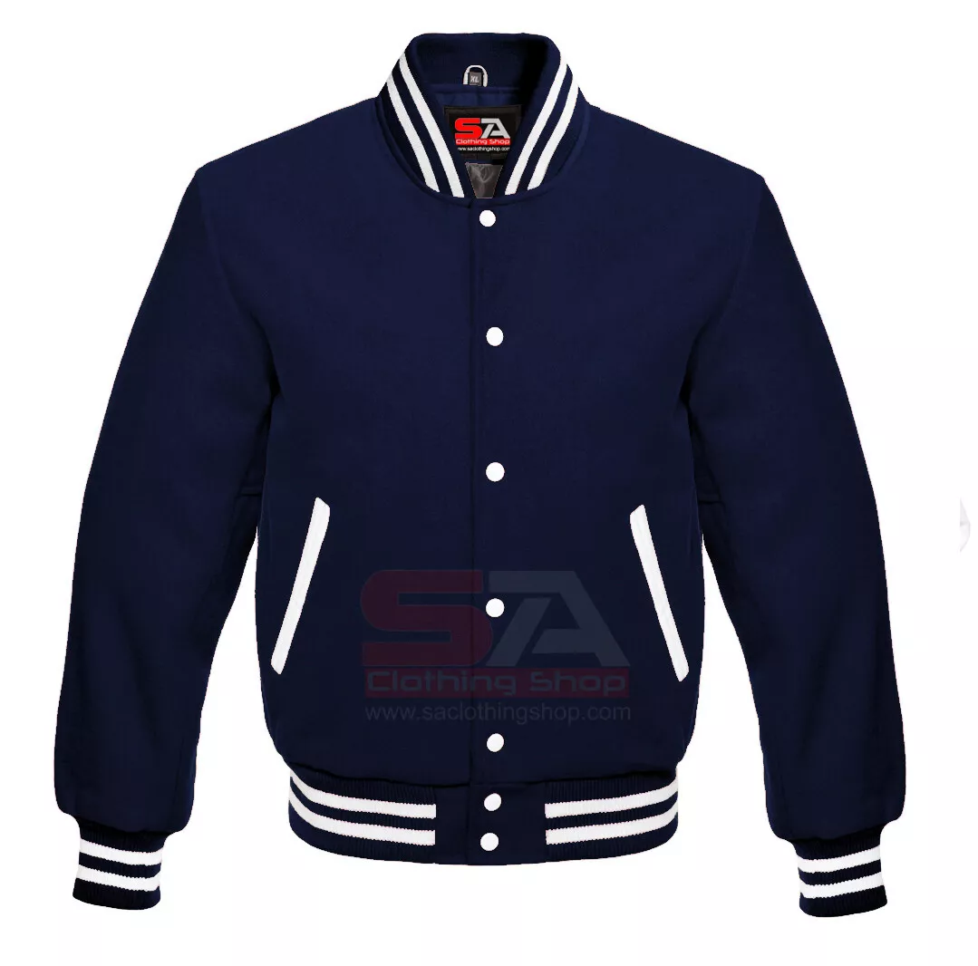 Herren College Letterman Baseball Bomber Winter Jacke Navy Blau Wolle & Lederärmel Jacke