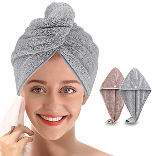 Ultra-Fine Microfiber Hair Drying Towels Thicken Cap with Button - Hair Towel Original Magic Instant Hair Dry Wrap for…