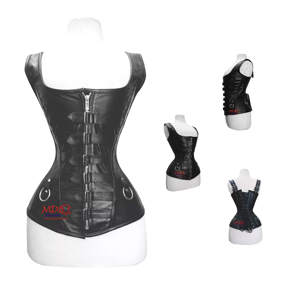Black All Overbust Real Leather Steampunk Gothic Steel Boned shaper corsetSGL-LC-101